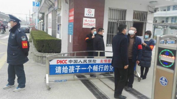场景一:早上学校大门口,值班老师提醒家长和学生带好口罩。严格执行入校体温检测制度,把好校园“第一道关”。