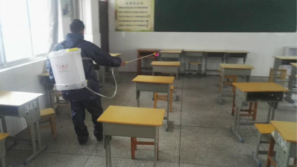 场景五:教室,办公室,各设施,后勤职工进行清扫消毒,并认真做好细致的消杀记录,具体落实到消杀执行人、消杀时间和消杀次数,实现灭毒全方位,杀毒无死角。