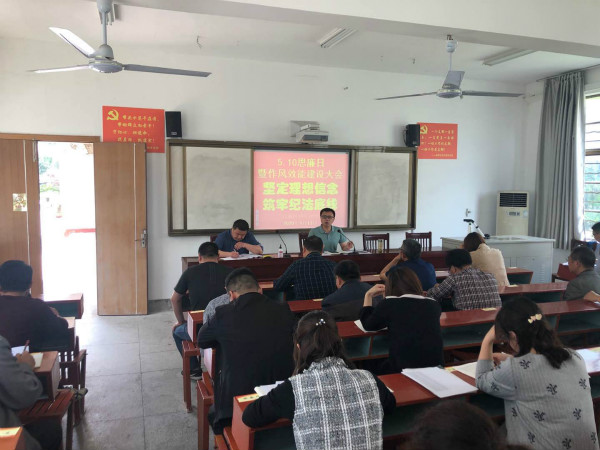在第十三个“5.10”思廉日到来之际,5月13日上午10点,高新区孙庄初中全体教职员工齐聚阶梯教室,参加以“坚定理想信念,筑牢纪法底线”为主题“5.10思廉日暨作风效能建设大会”,会议由校长李海翔主持。
