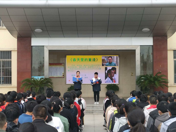 朗诵会前,副校长孙清代表学校发表了题为《五四青年节传递正能量》的致辞。他深情回顾了101年前的“五四”爱国主义运动,充分肯定了举办此次纪念活动的重大意义,对同学们提出要求并寄予殷切的希望。朗诵会在七(1)班《春天里的重逢》的深情诵读声中拉开了帷幕。全校三个年级共十三个参赛节目依次亮相表演,选手们准备充分,充满了自信与激情,品味出了对“五四”爱国主义运动的深情回眸,朗诵出了青年学生的历史担当,也表达出了当代中学生要让青春在奋斗中闪光的豪情壮志。整个诵读活动异彩纷呈,高潮迭起,赢得了全体师生的阵阵掌声。