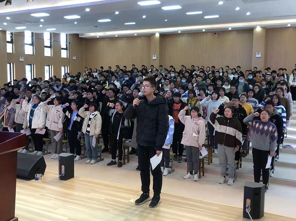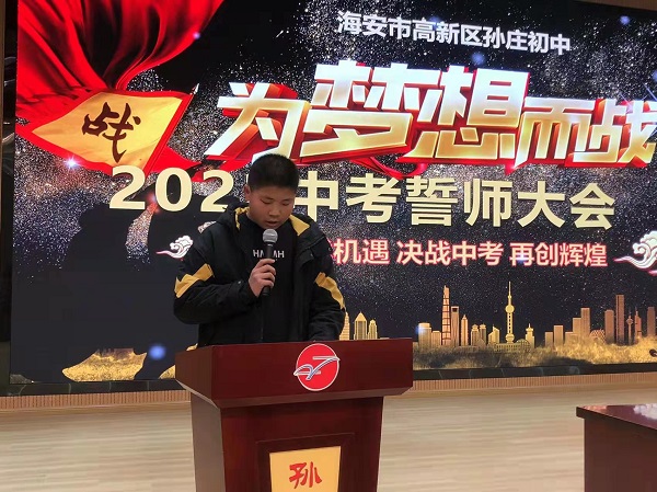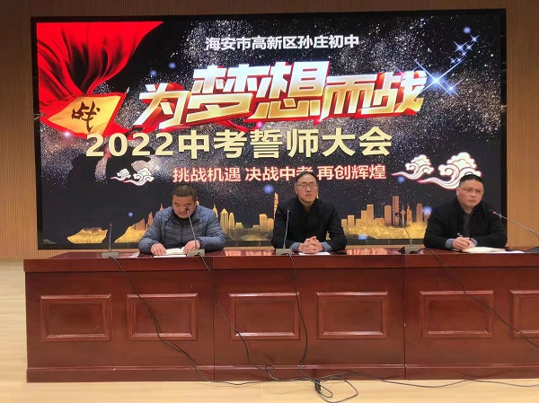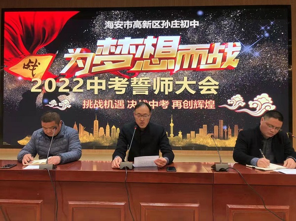 春风送暖催人进,草长莺飞三月天。为充分挖掘学习潜能,激励初三学子以更加饱满的热情、更加昂扬的斗志迎接中考的挑战,3月9日下午3时20分,高新区孙庄初中全体师生在学校报告厅集中,隆重举行2022届中考百日冲刺誓师大会。教导处主任许剑峰主持会议。